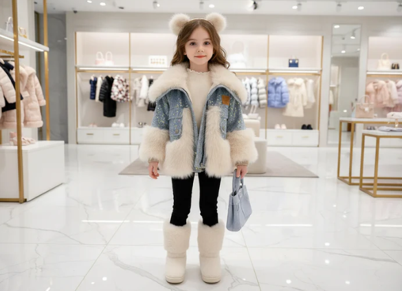 Kids Winter Jacket – Warm Faux Fur Coat with Sequins for Girls