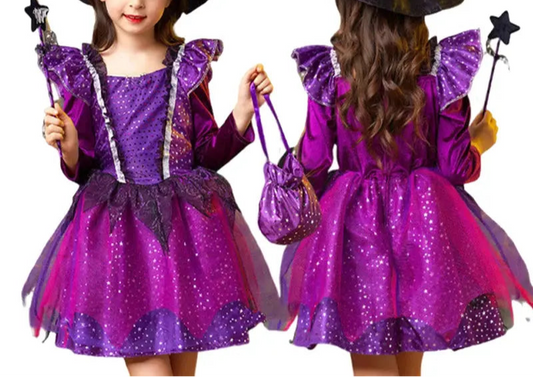Girls Witch Halloween Costume with Hat, Wand & Candy Bag
