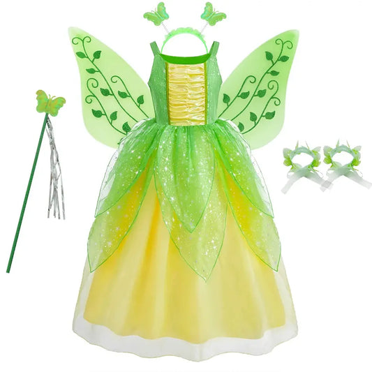 Kids Halloween Cosplay Costume Fairy Witch Party Dress with Wing