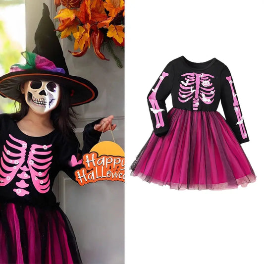 Kids Girl Halloween Dress – Rainbow Skeleton Party Costume