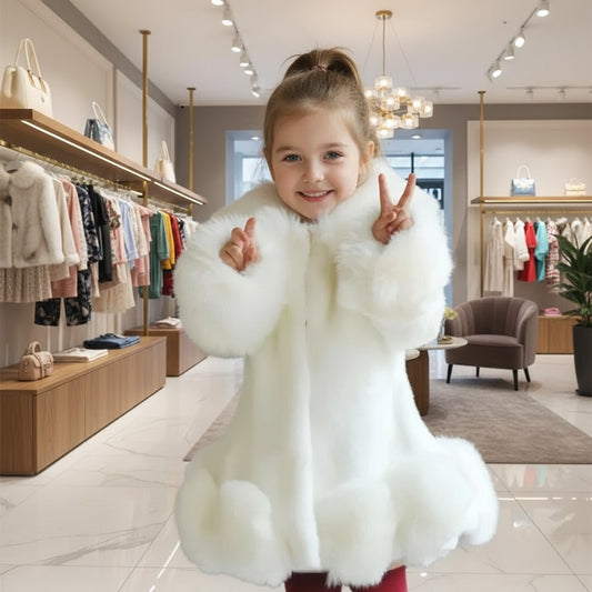 Autumn winter coat for baby girls – premium warm faux fur princess outerwear.