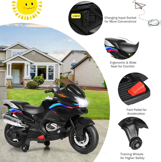 Kids Ride On Motorcycle – Electric Toy Bike with Lights and Safety Wheels