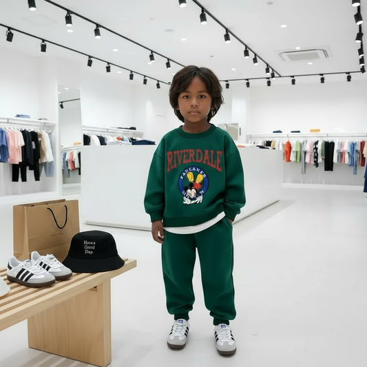 Boys Mickey Mouse Tracksuit – Green Sweatshirt & Pants Set